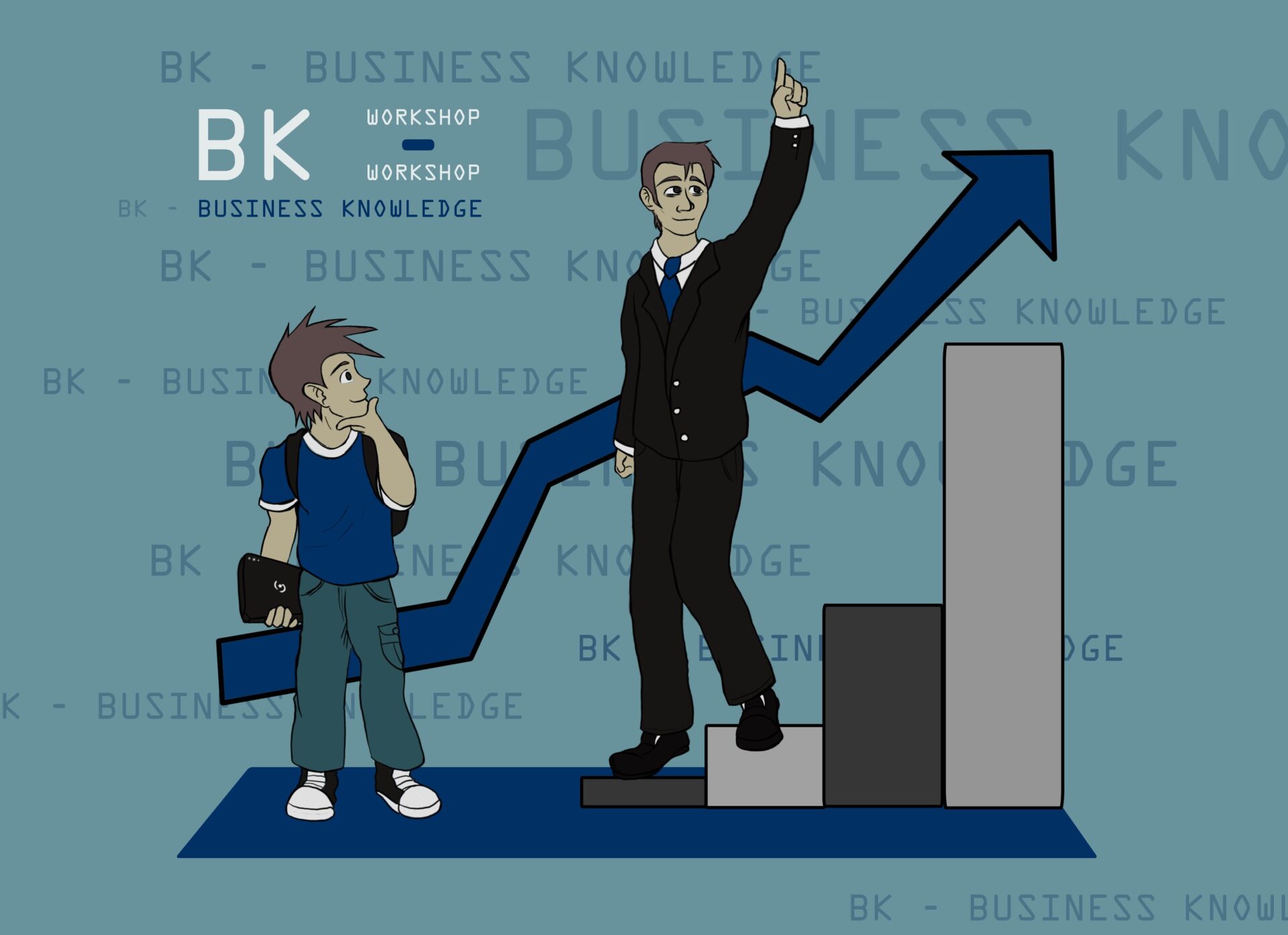 Nem só de orcs vive o artista. Em 2010, experimentei estilos mais comerciais. A caricatura vetorizada (ao lado da foto real) e a ilustração corporativa ('Business') provam que eu estava testando a versatilidade do meu traço, buscando atender pedidos reais fora da fantasia medieval.