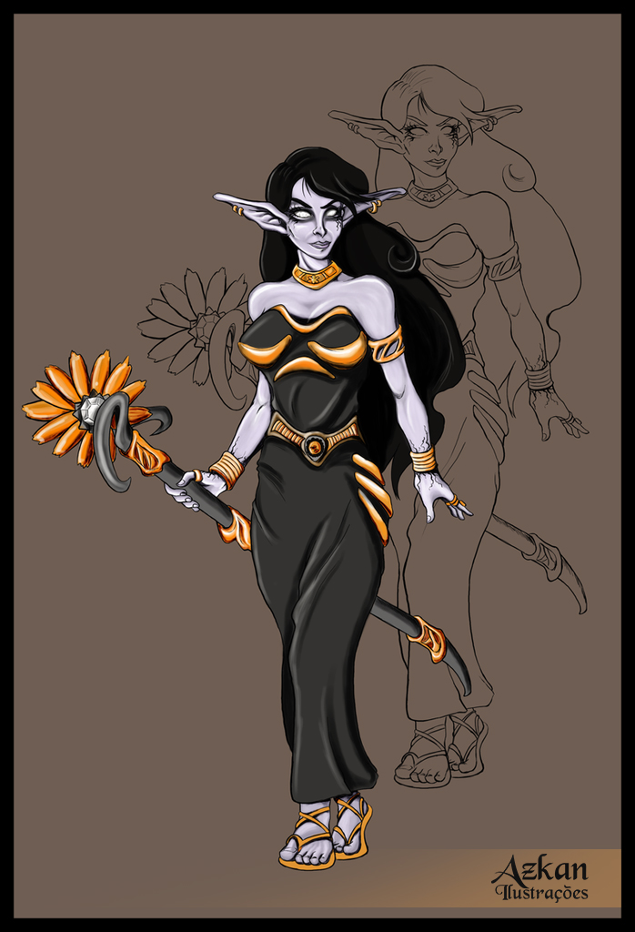 Qualquer jogo de RPG precisa de diversidade. Em 2010, desafiei minha zona de conforto desenhando diferentes anatomias: a leveza da Elfa-maga, a fluidez do Elfo do Mar e a estrutura animal do Tauren.