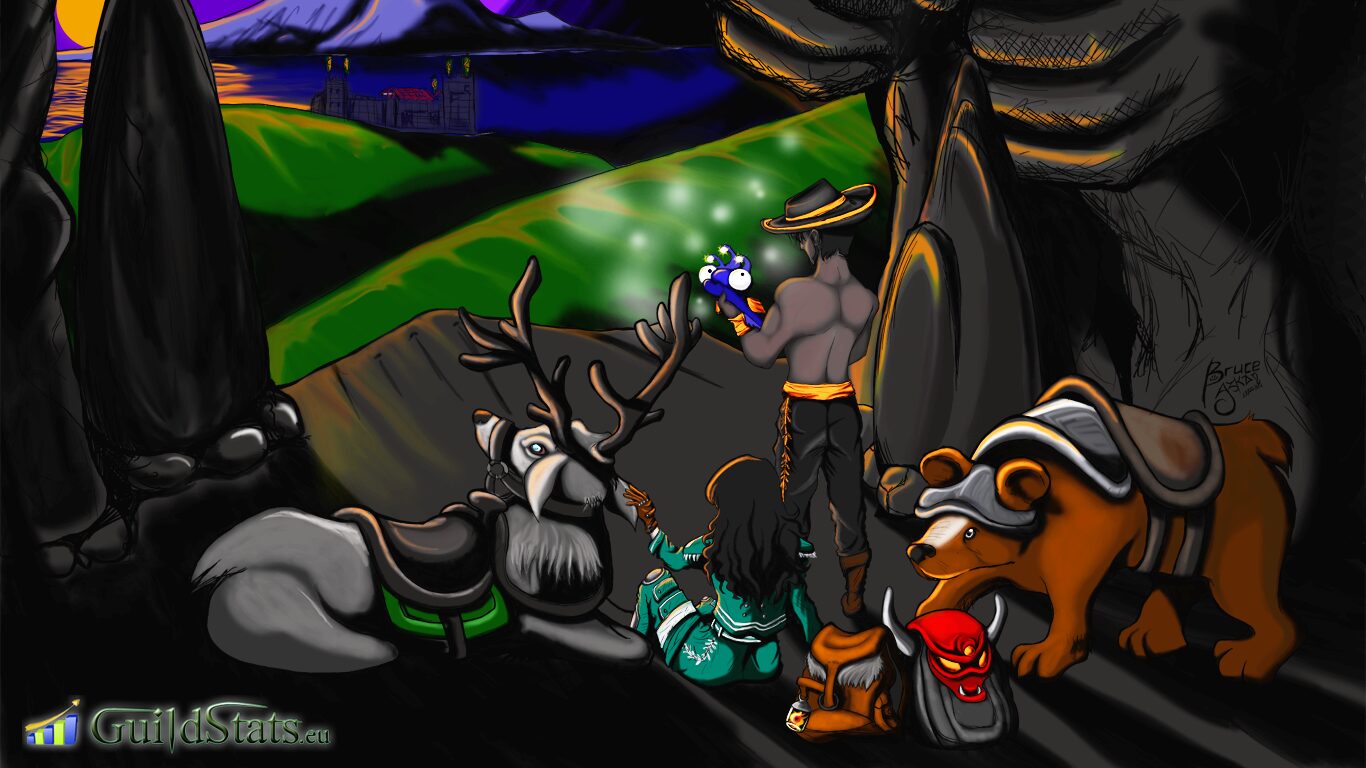 Sair do personagem com fundo branco para uma cena completa é um salto gigante. Esta arte para o fansite TibiaStats foi um dos meus desafios mais complexos da época.